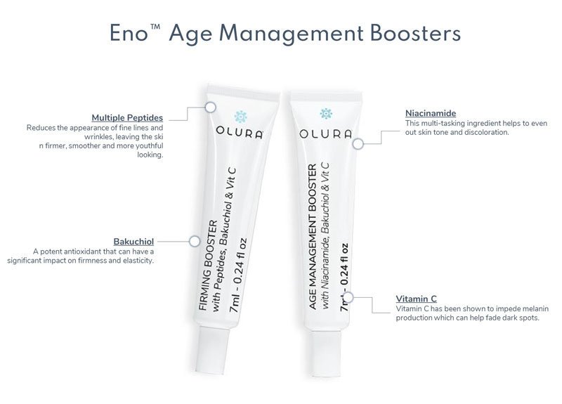 Directions: Pour your boosters into the Olura Treatment Serum bottle and shake for 10-15 seconds to blend thoroughly.